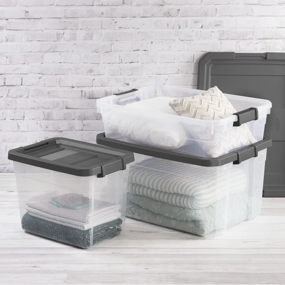 40 Quart Stacker Box, Durable Clear Plastic Bin with Lid, Dark Gray