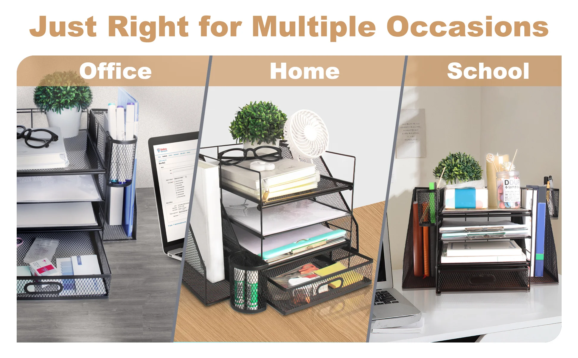 Organize your literary essentials, from books and magazines to letters and A4 papers, with grace and style. The bottom drawer seamlessly accommodates the little nuances of office life: sticky notes, dovetail clips, and the instruments of creation like scissors and staplers.File & Pen Compartments